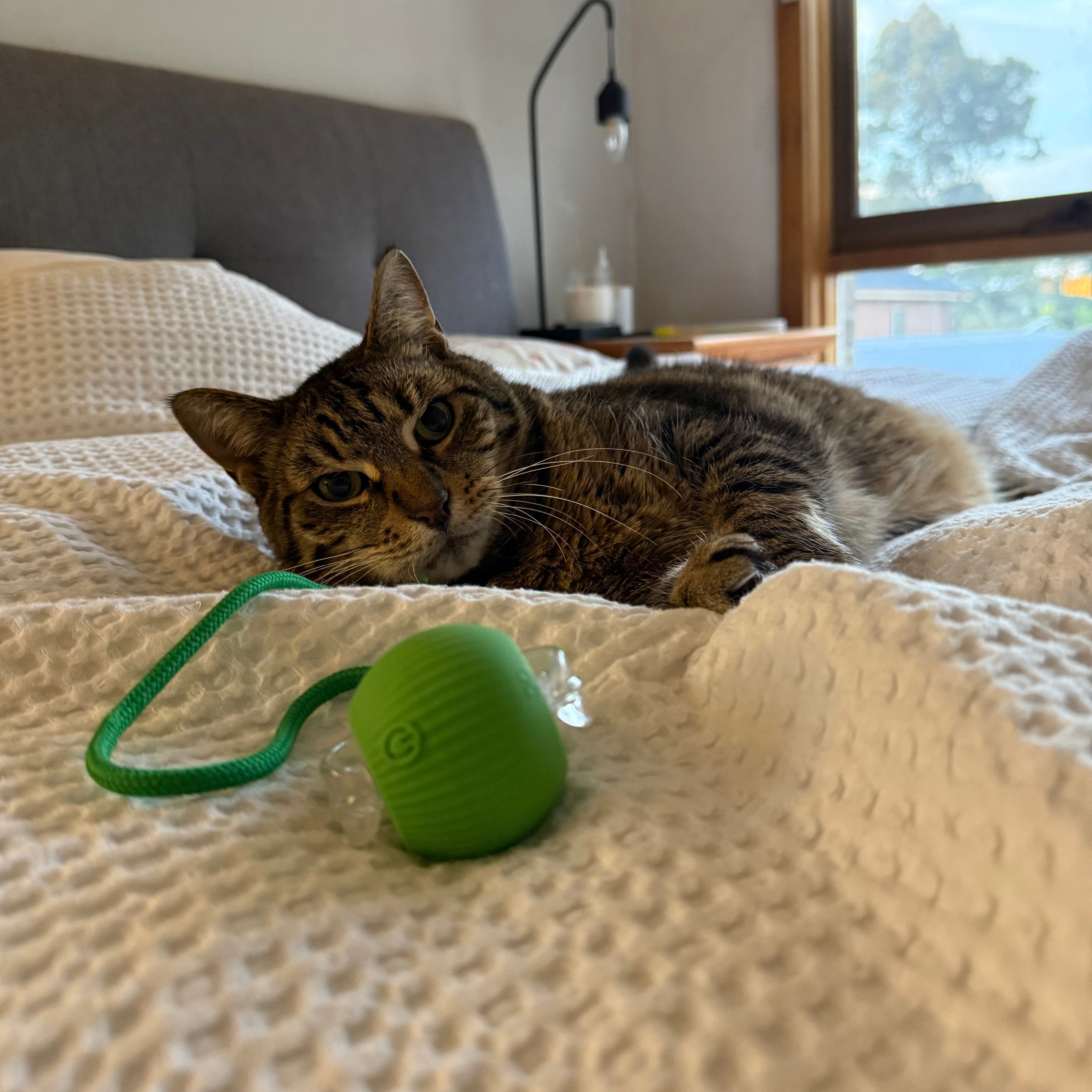 Der motorisierte Haustierball bietet 5-minütige Spielphasen, gefolgt von einem Standby-Modus, und sorgt so für ein gesundes Gleichgewicht zwischen Bewegung und Ruhe. Dank der integrierten Bewegungserkennung kann Ihre Katze das Spielzeug mit einer einfachen Berührung wieder aktivieren.